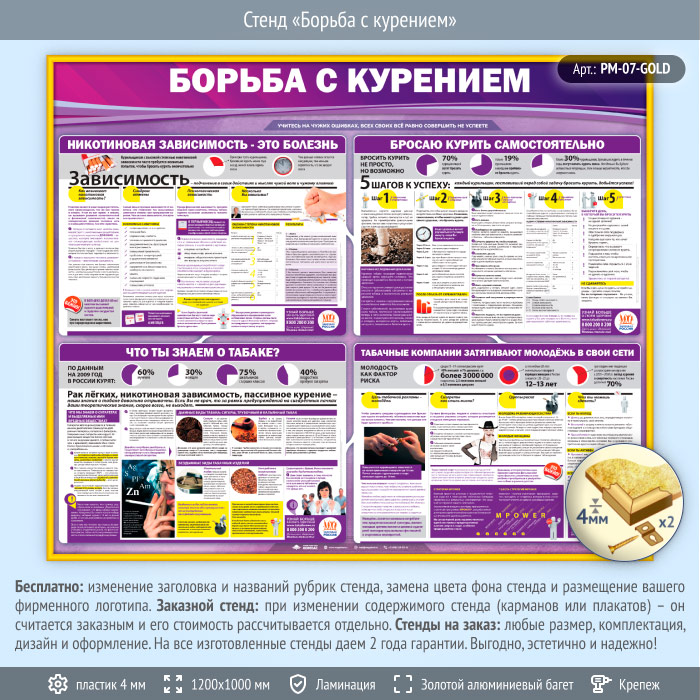Стенд «Борьба с курением» (PM-07-GOLD) в Магнитогорске купить