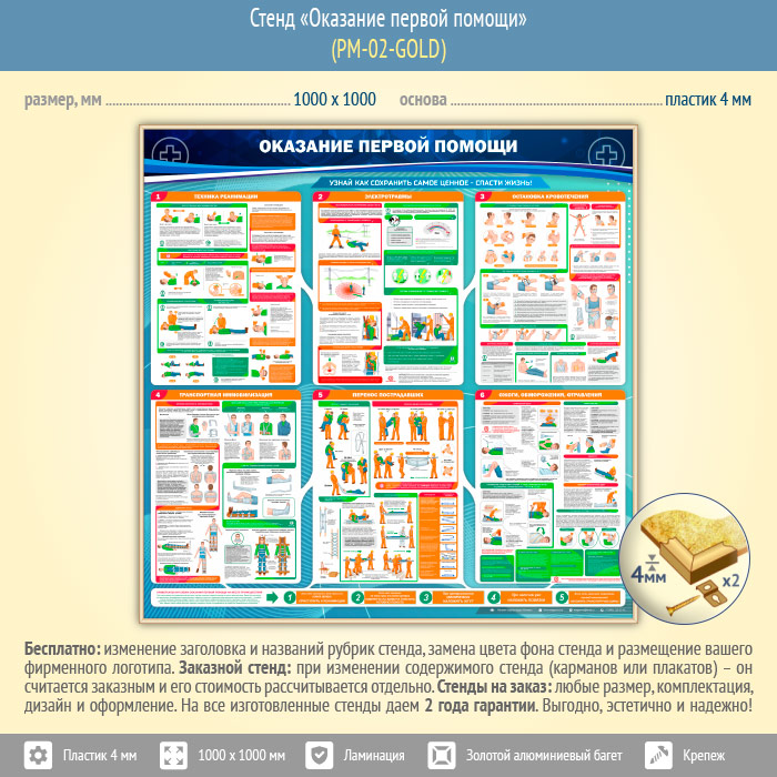 Стенд «Оказание первой помощи» (PM-02-GOLD) в Магнитогорске купить