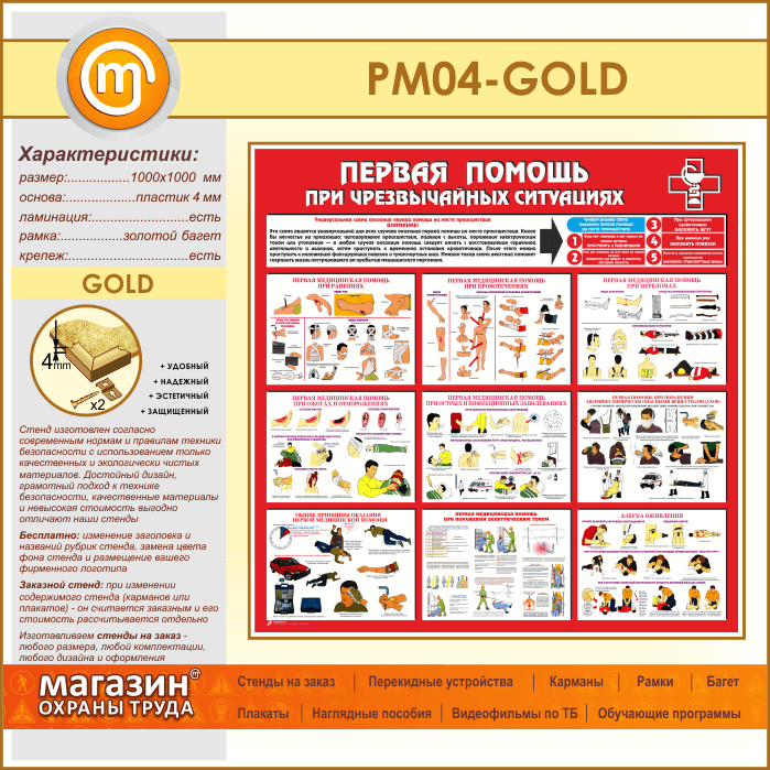 Стенд «Первая помощь при чрезвычайных ситуациях» (PM-04-GOLD) в Магнитогорске купить