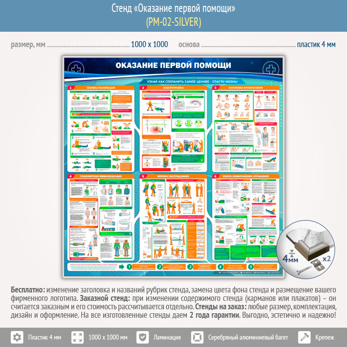 Стенд «Оказание первой помощи» (PM-02-SILVER) в Магнитогорске купить