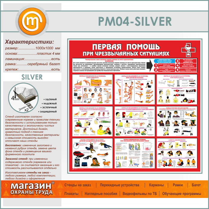Стенд «Первая помощь при чрезвычайных ситуациях» (PM-04-SILVER) в Магнитогорске купить