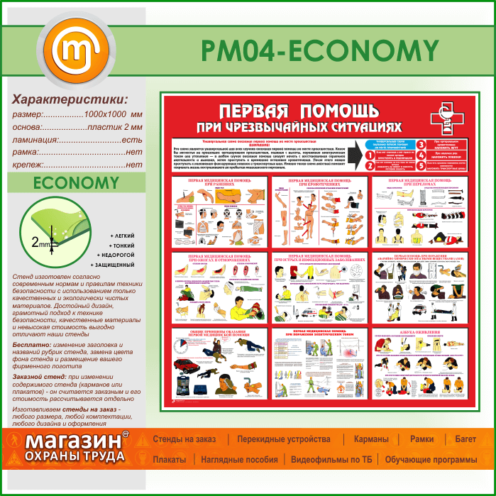Стенд «Первая помощь при чрезвычайных ситуациях» (PM-04-ECONOMY) в Магнитогорске купить
