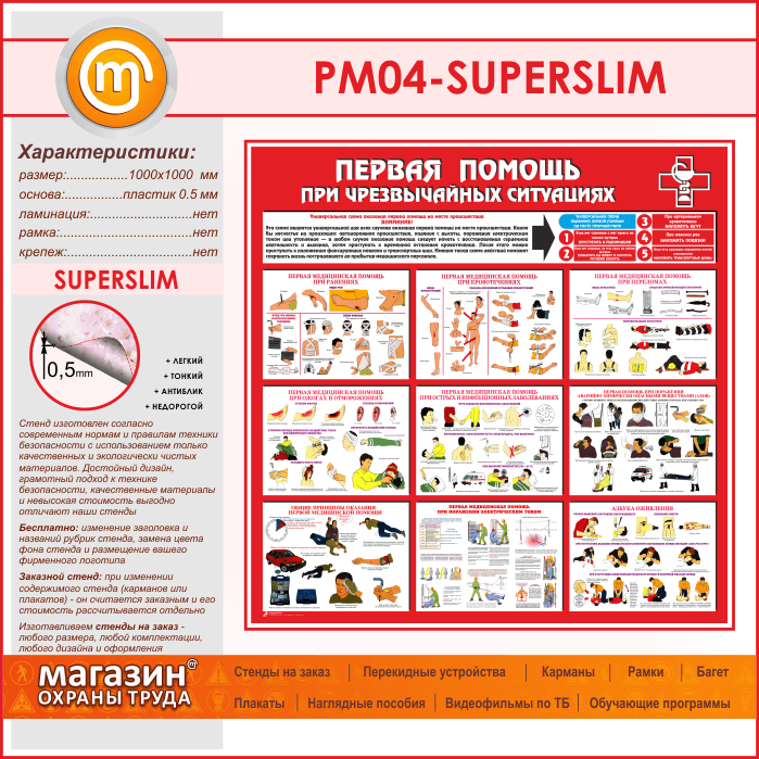 Стенд «Первая помощь при чрезвычайных ситуациях» (PM-04-SUPERSLIM) в Магнитогорске купить