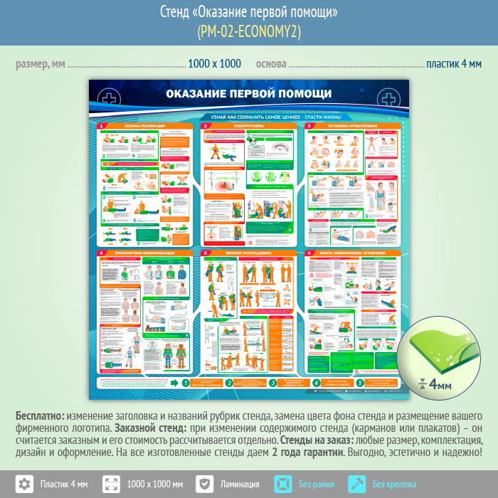 Стенд «Оказание первой помощи» (PM-02-ECONOMY2) в Магнитогорске купить