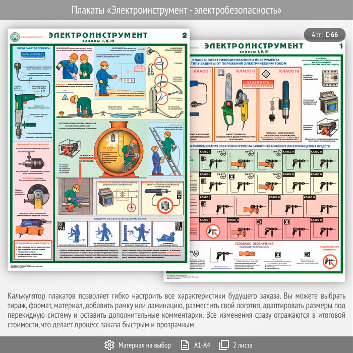 Плакаты «Электроинструмент - электробезопасность» (С-66, 2 листа)