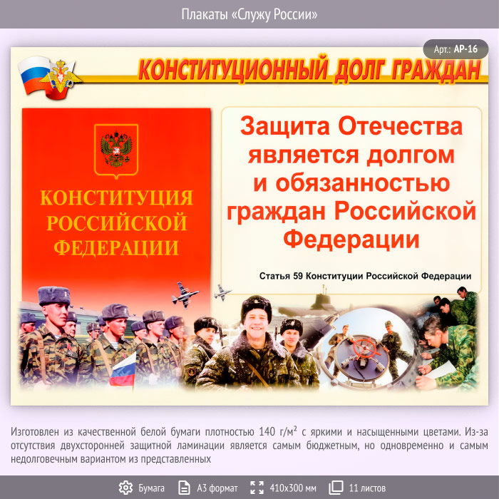 Плакаты «Служу России» (АР-16, бумага, А3, 11 листов) в Магнитогорске купить