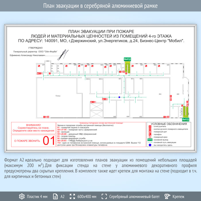 План эвакуации в серебряной алюминиевой рамке (А2 формат) в Магнитогорске купить
