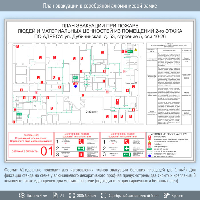 План эвакуации в серебряной алюминиевой рамке (А1 формат) в Магнитогорске купить