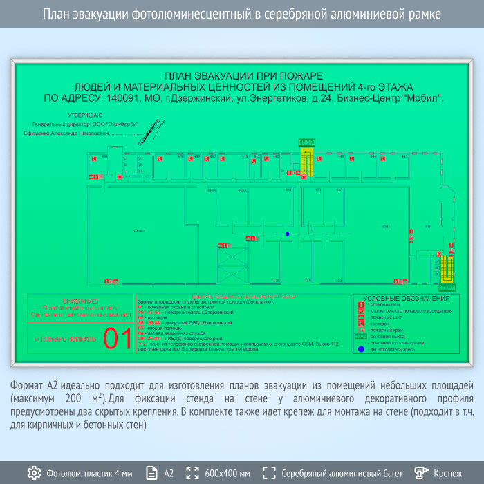 Фотолюминесцентный план эвакуации — Профи 200 (А2, ПВХ 4 мм, серебряный багет) в Магнитогорске купить