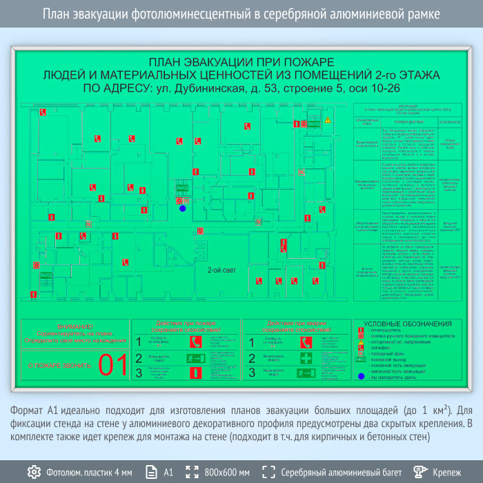 Фотолюминесцентный план эвакуации — Профи 200 (А1, ПВХ 4 мм, серебряный багет) в Магнитогорске купить