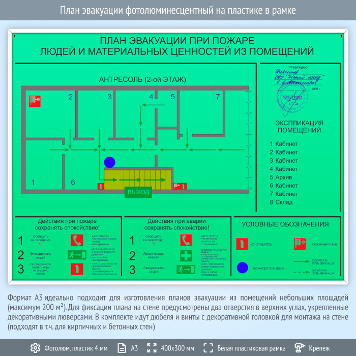 План эвакуации фотолюминесцентный на пластике в рамке (А3 формат) в Магнитогорске купить