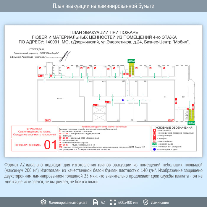 План эвакуации на ламинированной бумаге (А2 формат) в Магнитогорске купить