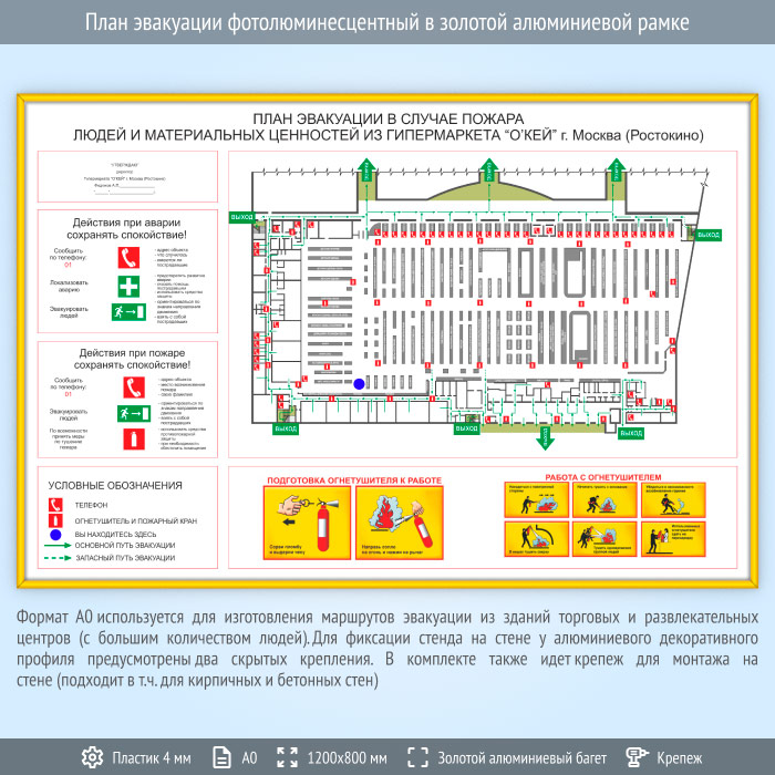 План эвакуации в золотой алюминиевой рамке (А0 формат) в Магнитогорске купить