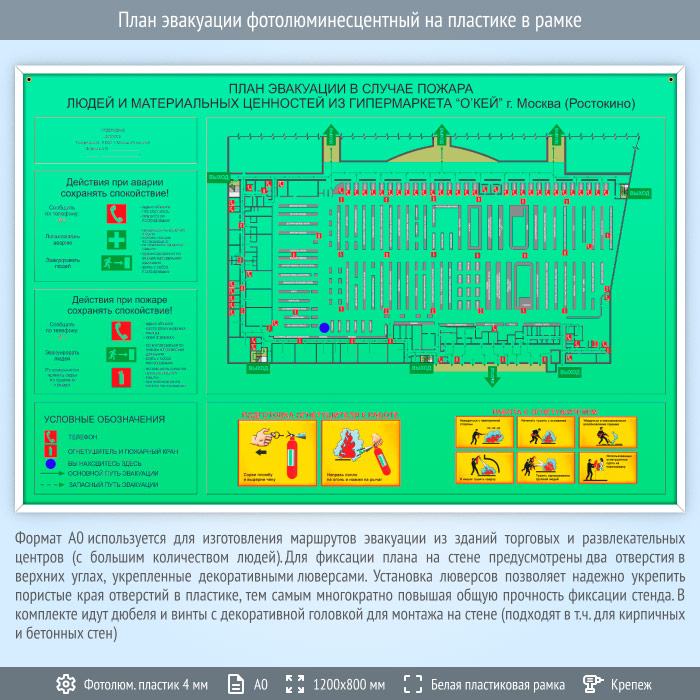План эвакуации фотолюминесцентный на пластике в рамке (А0 формат) в Магнитогорске купить