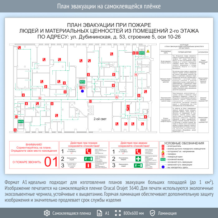 План эвакуации на самоклеящейся плёнке (А1 формат) в Магнитогорске купить