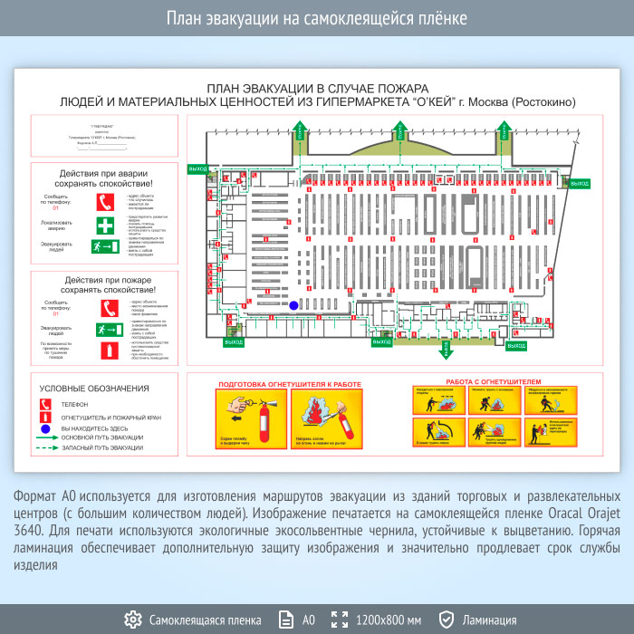 План эвакуации на самоклеящейся плёнке (А0 формат) в Магнитогорске купить