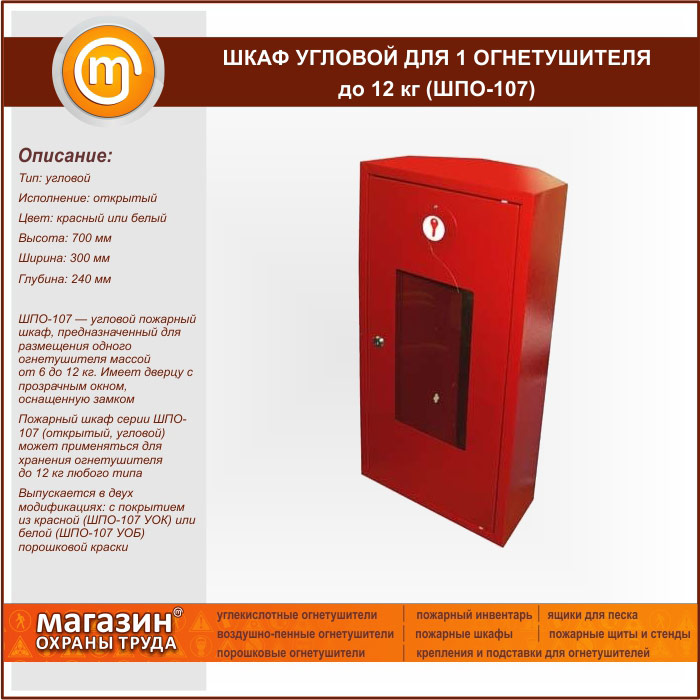 Шкаф пожарный ШПО-107 угловой для 1 огнетушителя до 12 кг в Магнитогорске купить