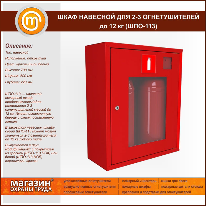 Шкаф пожарный ШПО-113 навесной для 2-3 огнетушителей до 12 кг в Магнитогорске купить