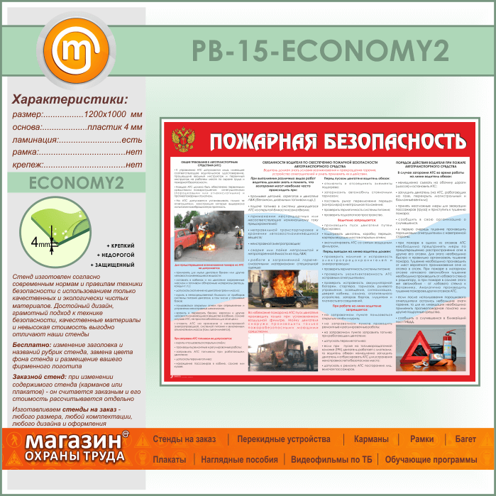 Стенд «Пожарная безопасность на автотранспорте» (PB-15-ECONOMY2) в Магнитогорске купить