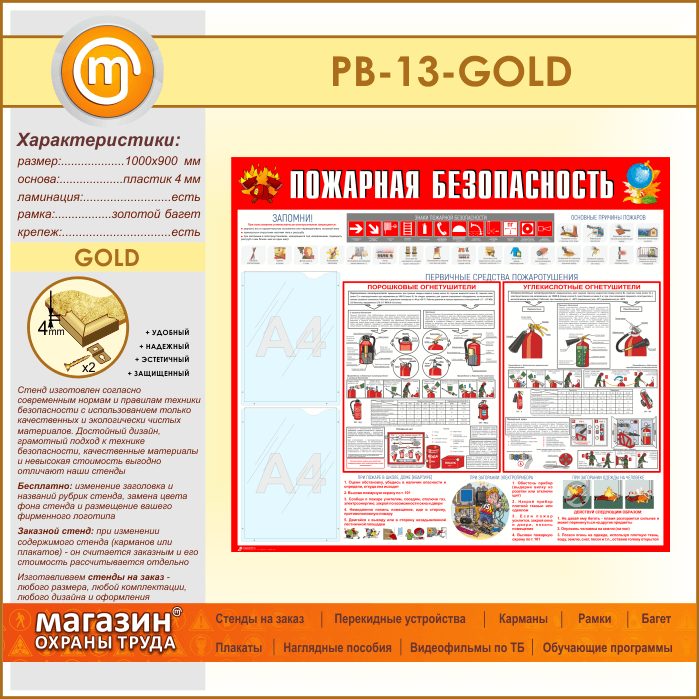 Стенд «Пожарная безопасность» с 2 карманами (PB-13-GOLD) в Магнитогорске купить