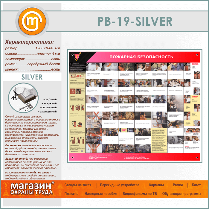 Стенд «Пожарная безопасность» (PB-19-SILVER) в Магнитогорске купить