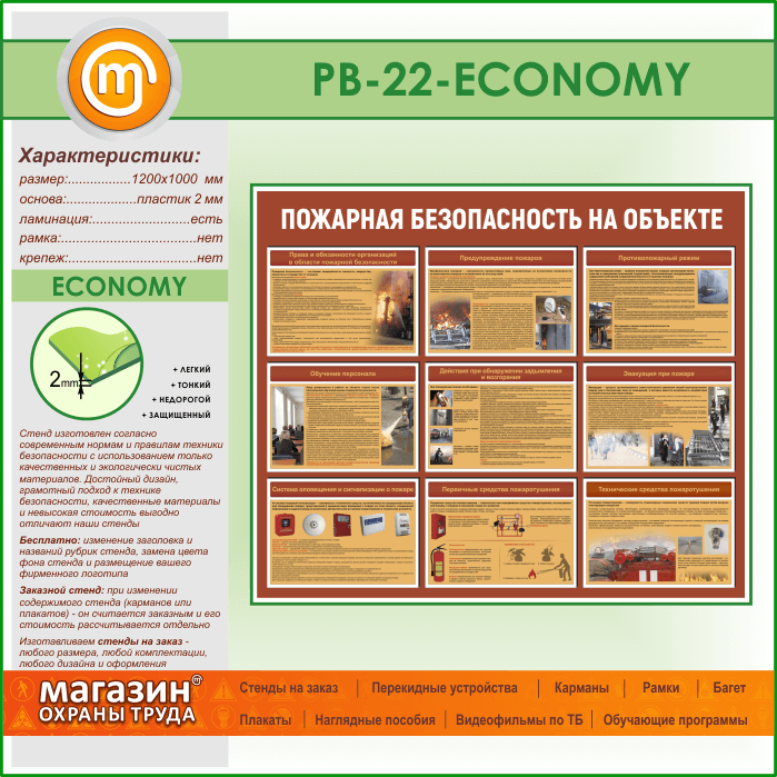Стенд «Пожарная безопасность на объекте» (PB-22-ECONOMY) в Магнитогорске купить