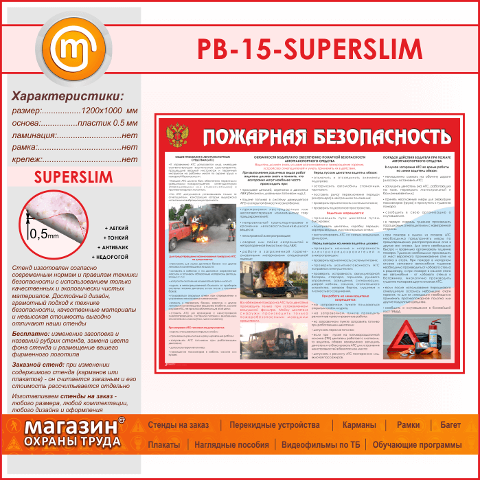 Стенд «Пожарная безопасность на автотранспорте» (PB-15-SUPERSLIM) в Магнитогорске купить