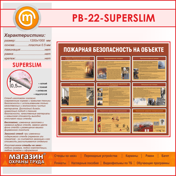 Стенд «Пожарная безопасность на объекте» (PB-22-SUPERSLIM) в Магнитогорске купить