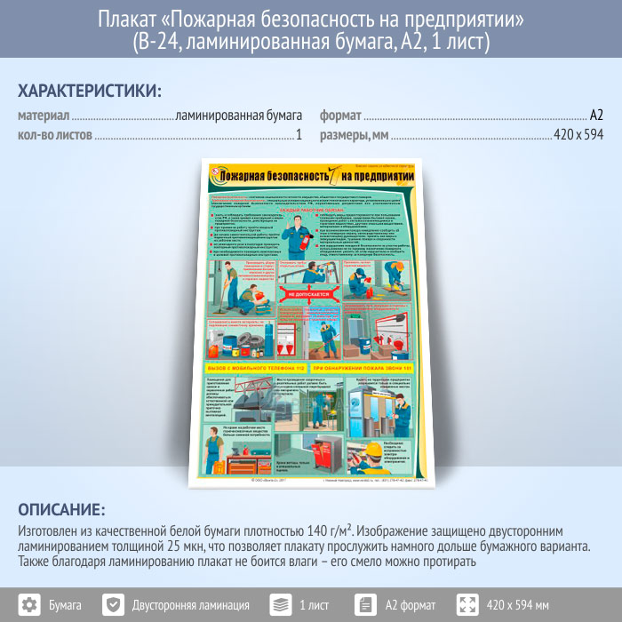Плакат «Пожарная безопасность на предприятии» (В-24, ламинированная бумага, А2, 1 лист) в Магнитогорске купить