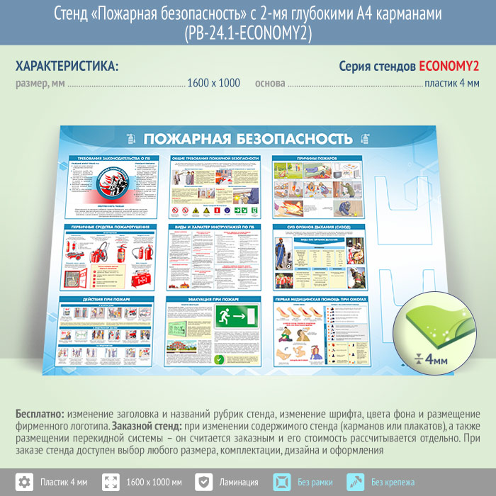 Стенд «Пожарная безопасность» с 2-мя глубокими А4 карманами (PB-24.1-ECONOMY2) в Магнитогорске купить