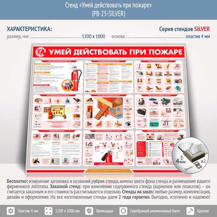 Стенд «Умей действовать при пожаре» (PB-25-SILVER) в Магнитогорске купить