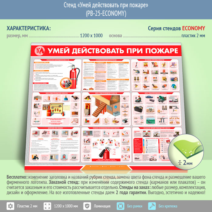 Стенд «Умей действовать при пожаре» (PB-25-ECONOMY) в Магнитогорске купить