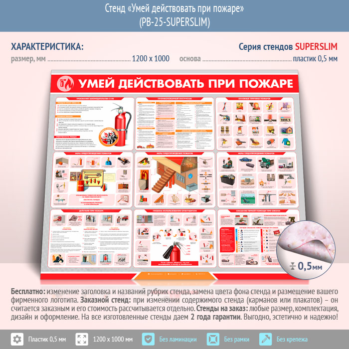 Стенд «Умей действовать при пожаре» (PB-25-SUPERSLIM) в Магнитогорске купить