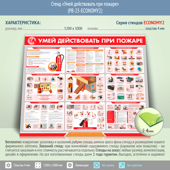 Стенд «Умей действовать при пожаре» (PB-25-ECONOMY2) в Магнитогорске купить
