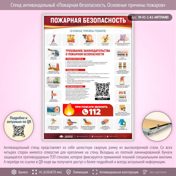Стенд антивандальный «Пожарная безопасность. Основные причины пожаров» (M-41-1-А1-ANTIVAND) в Магнитогорске купить