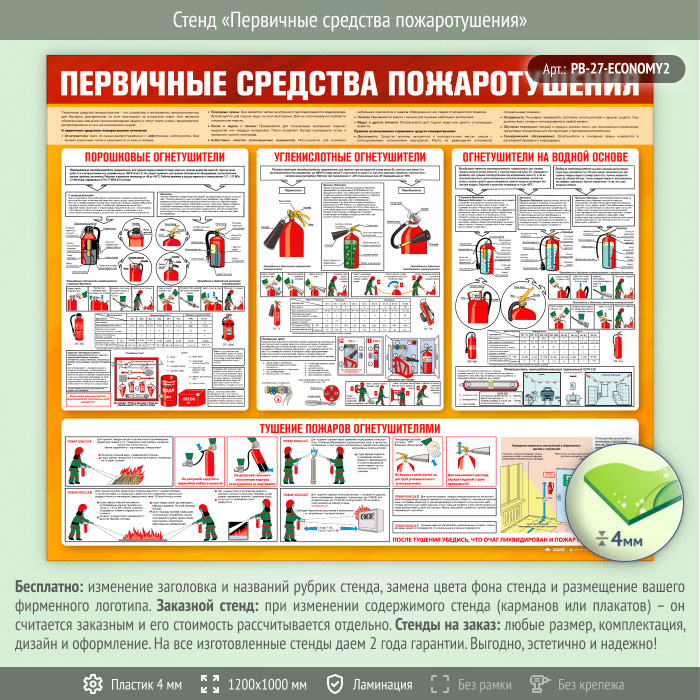 Стенд «Первичные средства пожаротушения» (PB-27-ECONOMY2) в Магнитогорске купить