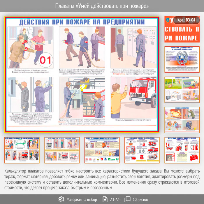 Плакаты «Умей действовать при пожаре» (ВЗ-04, 10 листов) в Магнитогорске купить