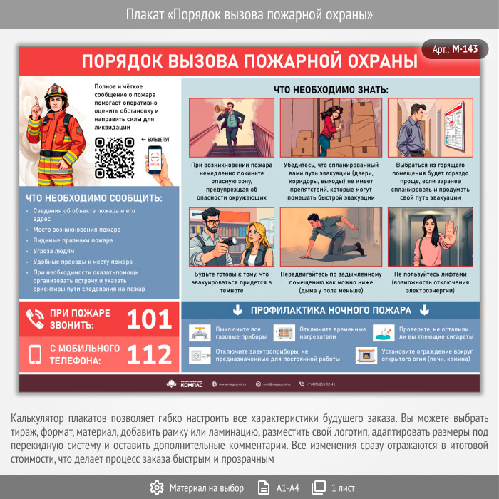 Плакат «Порядок вызова пожарной охраны» с QR (М-143, 1 лист) в Магнитогорске купить