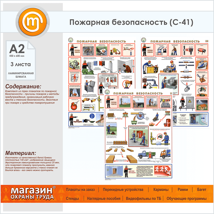 Плакаты «Пожарная безопасность» (С-41, ламинированная бумага, А2, 3 листа) в Магнитогорске купить