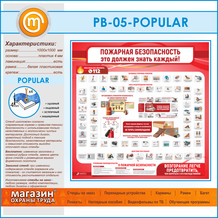 Стенд «Пожарная безопасность. Это должен знать каждый» (PB-05-POPULAR) в Магнитогорске купить