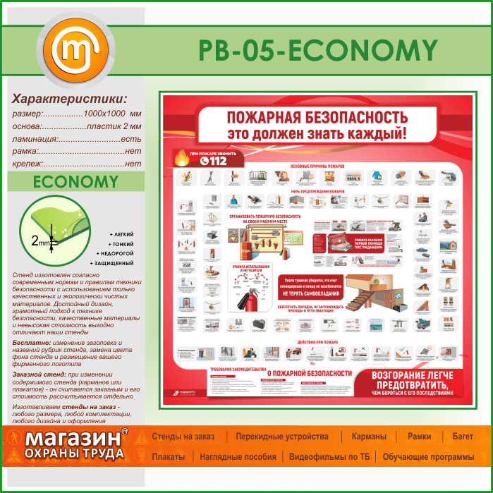 Стенд «Пожарная безопасность. Это должен знать каждый» (PB-05-ECONOMY) в Магнитогорске купить