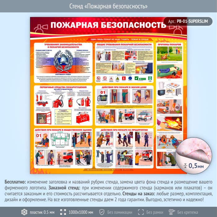 Стенд «Пожарная безопасность» (PB-01-SUPERSLIM) в Магнитогорске купить