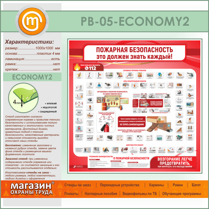Стенд «Пожарная безопасность. Это должен знать каждый» (PB-05-ECONOMY2) в Магнитогорске купить