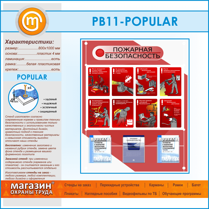 Стенд «Стенд пожарная безопасность в строительстве» с 3 объемными карманами (PB-11-POPULAR) в Магнитогорске купить