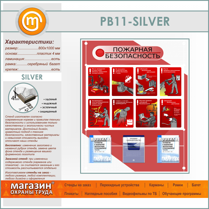 Стенд «Стенд пожарная безопасность в строительстве» с 3 объемными карманами (PB-11-SILVER) в Магнитогорске купить