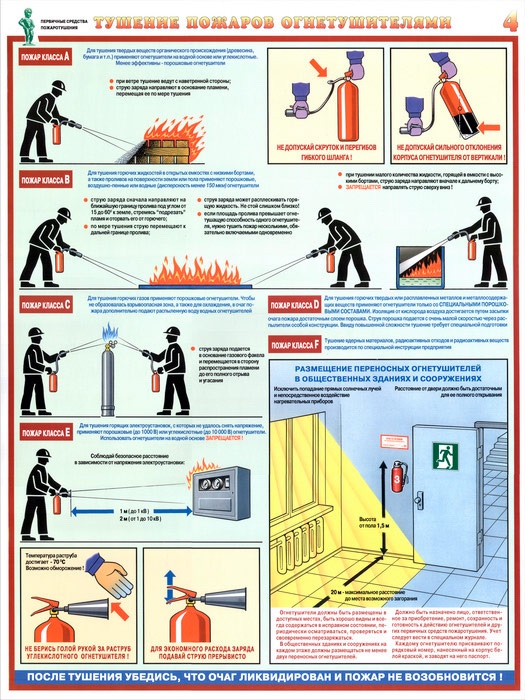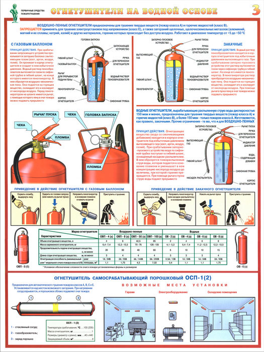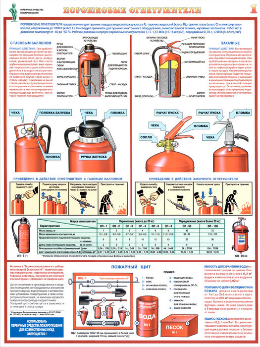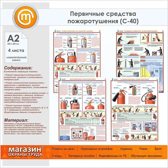 Плакаты «Первичные средства пожаротушения» (С-40, ламинированная бумага, А2, 4 листа) в Магнитогорске купить