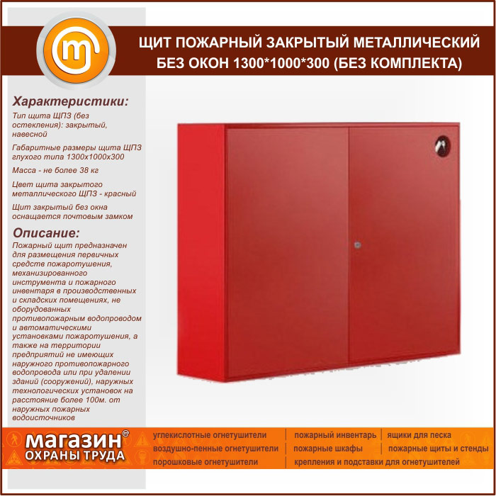 Щит пожарный закрытый металлический без окон 1300*1000*300 (без комплекта) в Магнитогорске купить