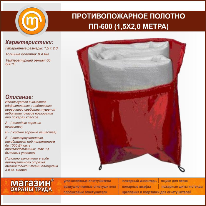 Противопожарное полотно ПП-600 (1, 5х2, 0 метра) в Магнитогорске купить