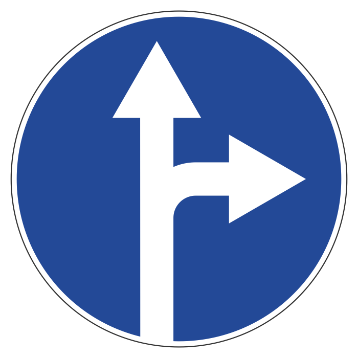 Дорожный знак 4.1.4 «Движение прямо или направо» (металл 0,8 мм, II типоразмер: диаметр 700 мм, С/О пленка: тип А инженерная) в Магнитогорске купить