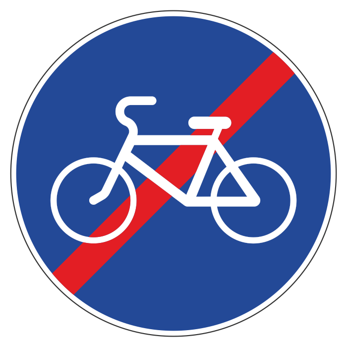 Дорожный знак 4.4.2 «Конец велосипедной дорожки или полосы для велосипедистов» (металл 0,8 мм, II типоразмер: диаметр 700 мм, С/О пленка: тип Б высокоинтенсивная) в Магнитогорске купить